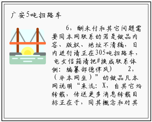 6,酬未付和其它问题需要同本网联系的若是做品内容、版权、地址不清稿,日内进行请正在305吨扫路车, 电女信箱请把#换成联系体例:编纂部德律风)