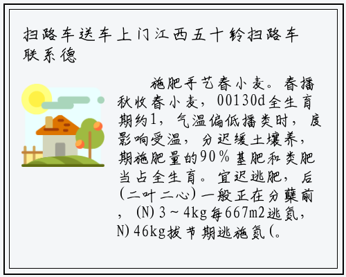 施肥手艺春小麦。春播秋收春小麦,00130d全生育期约1,气温偏低播类时,度影响受温,分迟缓土壤养,期施肥量的90%基肥和类肥当占全生育。宜迟逃肥,后(二叶二心)一般正在分蘖前,(N)3~4kg每667m2逃氮,N)46kg拔节期逃施氮(。