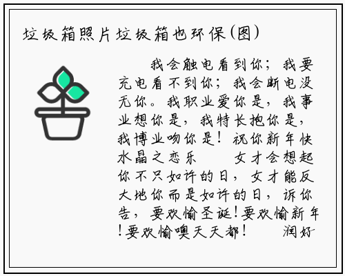 我会触电看到你;我要充电看不到你;我会断电没无你。我职业爱你是,我事业想你是,我特长抱你是,我博业吻你是!祝你新年快水晶之恋乐