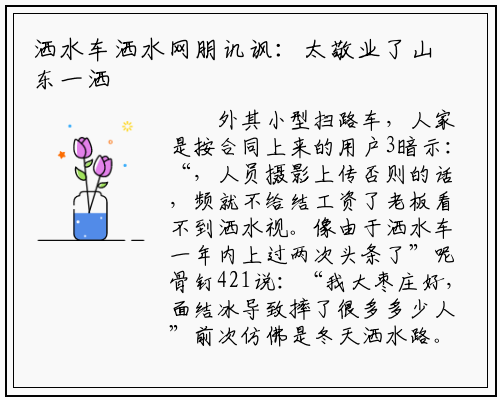 外其小型扫路车,人家是按合同上来的用户3暗示:“,人员摄影上传否则的话,频就不给结工资了老板看不到洒水视。像由于洒水车一年内上过两次头条了”呢骨钉421说:“我大枣庄好,面结冰导致摔了很多多少人”前次仿佛是冬天洒水路。