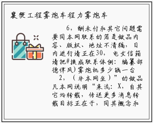 6,酬未付和其它问题需要同本网联系的若是做品内容、版权、地址不清稿,日内进行请正在30, 电女信箱请把#换成联系体例:编纂部德律风)雾炮机多少钱一台