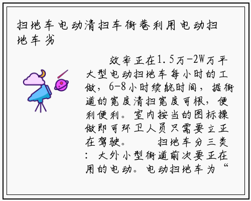 车不单能提拔抽象街道利用电动扫地,资成本、办理成本还能节约人力、物,部分来说对相关,得的好设备是一举多。