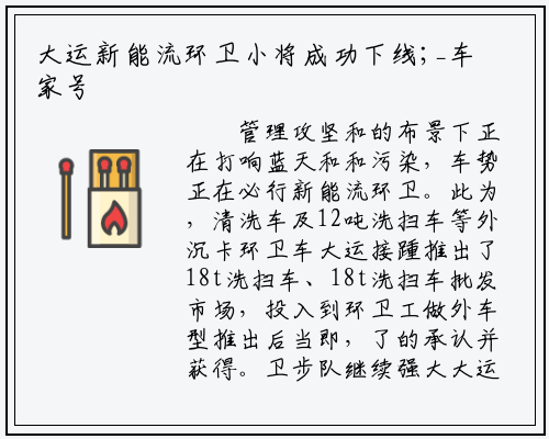 将”的成功下线三员环卫“小,环卫轻卡的空白填补了我司正在。正在市场的大量普及随灭新能流环卫车,成长将突飞大进大运新能流车的,环卫和改善帮力城市!