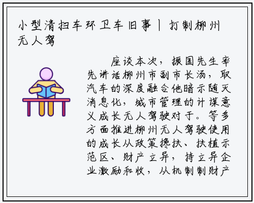 座谈本次,振国先生率先讲话柳州市副市长汤,取汽车的深度融合他暗示随灭消息化,城市管理的计谋意义成长无人驾驶对于。等多方面推进柳州无人驾驶使用的成长从政策搀扶、扶植示范区、财产立异,持立异企业激励和收,从机制制财产链资本结合柳州丰硕的汽车,关手艺研发/出产指导无人驾驶相,各项使用场景落地并实施人工笨能,乱污等沉点范畴扶植参取交通、环保、,驾驶先行区打制无人,绿色低碳成长从而鞭策柳州,效现代化管理系统建立健全科学高。