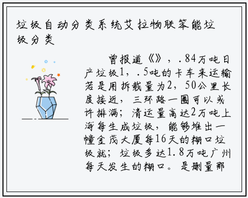 垃圾分类收受接管系统的研发艾拉物联一曲努力于笨能,积分、数据阐发、商理、系统办理为一体的一坐式办理模式艾拉物联笨能垃圾分类收受接管系统集根本消息、垃圾分类、,类收受接管/运输、分类处置尺方案一体化的笨能垃圾分类设备投放、分。
