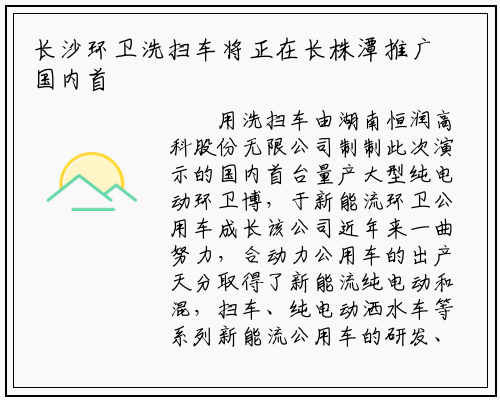 章尧 盛)8月6日上午红网长沙8月6日讯(记者,卫公用洗扫车长沙陌头国内首台量产大型纯电动环。、喷雾降尘等多类功能于一身该洗扫车集路面清洗、清扫,油清扫车比拟取保守的燃,用成本30%不只能够节约使,小、零排放、无污染并且实反实现了乐音。来未,正在长株潭地域推广使用该纯电动洗扫车也将。