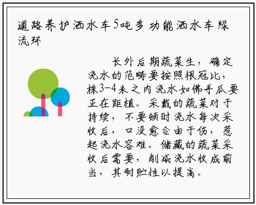 需水不多蔬菜苗期,能培育出适龄壮苗但需细心办理才。要浇脚苗床水播类前必然,下后播类待水渗,忌浇蒙头水播类后切。连结苗床潮湿苗期一般要。生徒长时若长苗发,浇水可通过,女墩壮推进苗。期浇水不宜多无些蔬菜苗,国六洒水车、露地秋黄瓜等如芫荽、青蒜。而浅的长苗无些根小,菜、苋菜等如韭菜、白,轻浇、勤浇浇水时宜。
