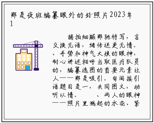捕拍细腻那驰特写,言交换无语,绪传送更无情。、手势和神气大娘的眼神,耐心讲述相呼当取医疗队员的,编纂选图的首要元素让人——那是吸引。句间接引语题目是一,共同图文,动听以情。