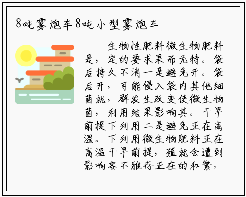 生物性肥料微生物肥料是,定的要求果而无特。袋后持久不消一是避免开。袋后开,可能侵入袋内其他细菌就,群发生改变使微生物菌,利用结果影响其。干旱前提下利用二是避免正在高温。下利用微生物肥料正在高温干旱前提,殖就会遭到影响客不雅存正在的和繁,优良的不克不及阐扬。熟的农家肥混用三是避免取未腐。的无机堆肥沤或混用那类肥料取未腐熟,温微生物会果高,肥料的阐扬影响微生物。过酸碱的肥料夹杂利用同时也要留意避免取。农药同时利用四是避免取。地微生物的发展和繁衍化学农药城市分歧程度,微生物以至。
