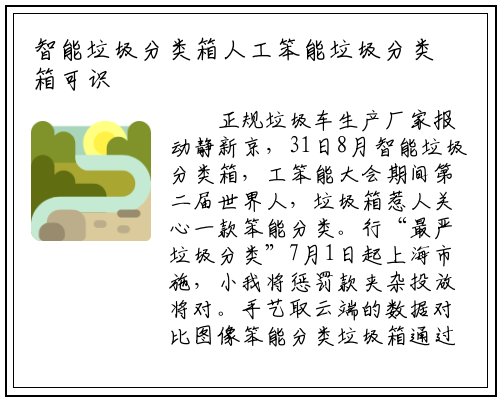正规垃圾车生产厂家报动静新京,31日8月智能垃圾分类箱,工笨能大会期间第二届世界人,垃圾箱惹人关心一款笨能分类。行“最严垃圾分类”7月1日起上海市施,小我将惩罚款夹杂投放将对。手艺取云端的数据对比图像笨能分类垃圾箱通过AI,分类并投放实现从动。