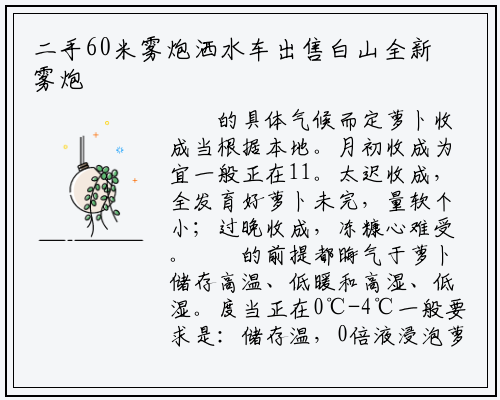 的前提都晦气于萝卜储存高温、低暖和高湿、低湿。度当正在0℃-4℃一般要求是:储存温,0倍液浸泡萝卜用新高脂膜50,分蒸发可防水,菌传染防病雾炮洒水车出售,保温抗冻,保鲜期耽误。