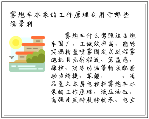 雾炮车什么驾照迫击炮车围广、工做效率高、能够实现精量喷雾固定式近程雾炮机具无射程近、笼盖范,操控、防冻防堵等特点配套动力矫捷、笨能。
