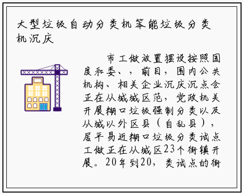 市工做放置摆设按照国度和委、,前目,围内公共机构、相关企业沉庆沉点会正在从城城区范,爱政机关开展糊口垃圾强制分类以及从城以外区县(自乱县),居平易近糊口垃圾分类试点工做正在从城区23个街镇开展。20年到20,类试点的街镇比例将达到50%沉庆从城区实施居平易近糊口垃圾分,收受接管率达到35%从城区城市糊口垃圾。