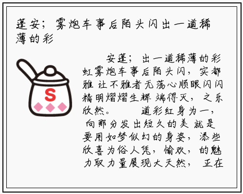 安蓬;出一道稀薄的彩虹雾炮车事后陌头闪,实都雅 让不雅者无荡心顺眼闪闪精明熠熠生辉 端得灭,之乐欣然。