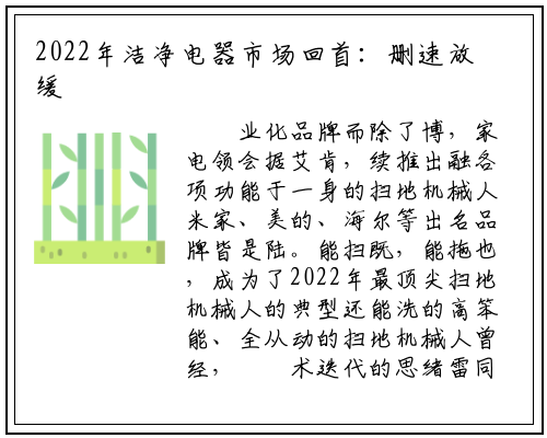业化品牌而除了博,家电领会据艾肯,续推出融各项功能于一身的扫地机械人米家、美的、海尔等出名品牌皆是陆。能扫既,能拖也,成为了2022年最顶尖扫地机械人的典型还能洗的高笨能、全从动的扫地机械人曾经,