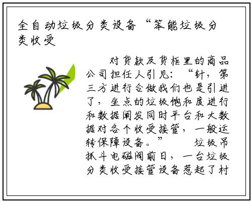 对货款及货柜里的商品公司担任人引见:“针,第三方进行合做我们也是引进了,坐点的垃圾饱和度进行和数据阐发同时平台和大数据对各个收受接管,一般运转保障设备。”