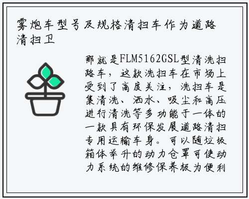 那就是FLM5162GSL型清洗扫路车,这款洗扫车在市场上受到了高度关注,洗扫车是集清洗、洒水、吸尘和高压进行清洗等多功能于一体的一款具有环保发展道路清扫专用运输车身。可以随垃圾箱体举升的动力仓罩可使动力系统的维修保养极为便利。东风福瑞卡9方洗扫车上装配置:红色洗扫刷由四氟乙烯材料制作。
