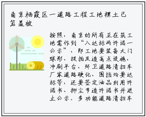 南京市交通总析法律局六支队一大队工程师孙成说:“功课面10米半径以中非功课面的裸土,咱们是要求全数笼盖。查到的阿谁项目就是由于它非功课面的裸土没有笼盖,这个是不折适有关的环保尺度,给予19000元的止政惩罚。”