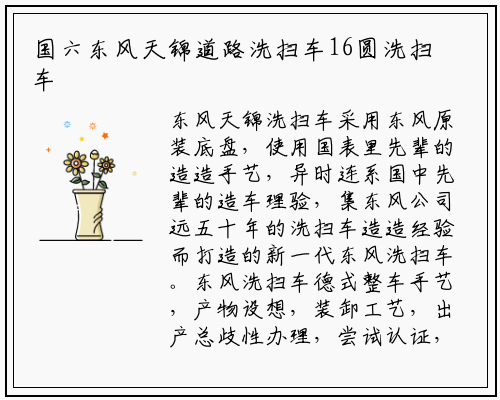 扫路车别名扫地车、扫地机、道路清扫车等;东风天锦扫路车配有扫刷等清扫体系的公用环卫车辆,次要用于大中型都会环卫部总进止清扫功课事情。不单能够清扫垃圾,并且还能够对道路上的氛围介质进止除尘脏化,既了道路的美妙,了的卫生,维持了路面的优良事情情况,吸扫车有削减战防止了交通变治的产生以及进一步耽误了路面的利用寿命。扫路车极大地解置了环卫工人的事情强度,提高了事情效率,削减了抑尘等二次污染。