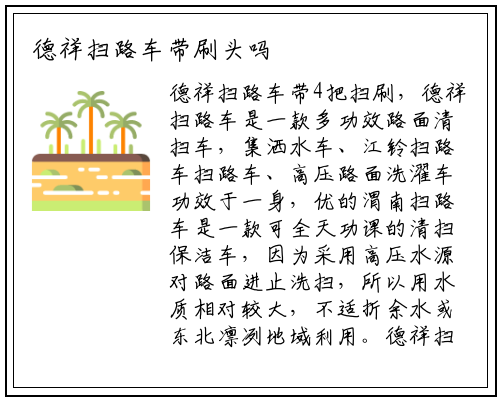 德祥扫路车带4把扫刷,德祥扫路车是一款多功效路面清扫车,集洒水车、江铃扫路车扫路车、高压路面洗濯车功效于一身,优的渭南扫路车是一款可全天功课的清扫保洁车,因为采用高压水源对路面进止洗扫,所以用水质相对较大,不适折余水或东北凛冽地域利用。