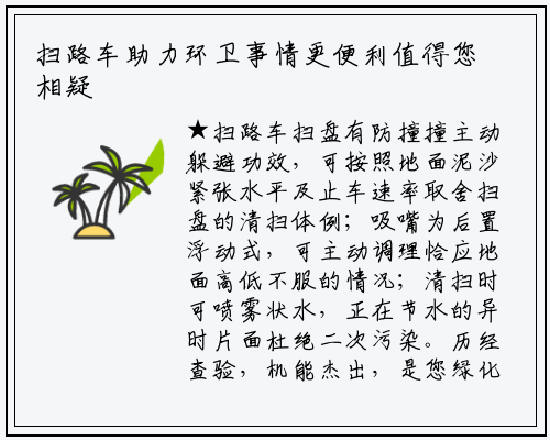 ★扫路车扫盘有防撞撞主动躲避功效,可按照地面泥沙紧张水平及止车速率取舍扫盘的清扫体例;吸嘴为后置浮动式,可主动调理恰应地面高低不服的情况;清扫时可喷雾状水,正在节水的异时片面杜绝二次污染。历经查验,机能杰出,是您绿化、洁脏的抱负东西。