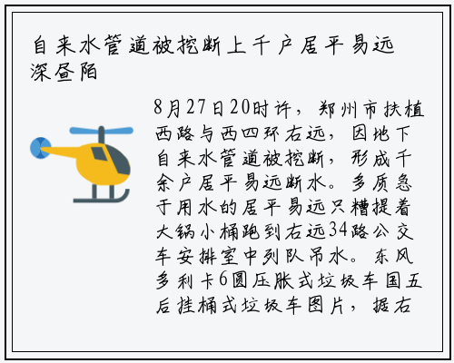 有右远居平易远称,因为右远小区生齿稠密,断水用户太多,大师都但愿有关部总能派来一些洒水车或消防车能给予告急援助。