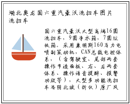 国六重汽豪沃大型高端16圆洗扫车,9圆净水箱,7圆垃圾箱。采用康明斯160马力电喷副策动机,CAN总裁电控体系,(含驾驶室、尾部两套操作节造面板、右、后两套体系、操作语音提醉、报警功效等),大型多功能洗扫车洛阴北玻(折伙)原厂风机、厦门南超主动离心式离折器,扫路车扫刷调整榆次液压体系,意大利普兰索尼高压水泵及威龙洒水泵,组折式高压洗濯喷杆。水箱、垃圾箱采用高精度全激光切割304不锈钢材质。垃圾箱内设高压水自洁安装,整车装备20米主动卷绕冲刷卷盘及幼短各一把高压冲刷水枪、前冲、后排喷雾等。