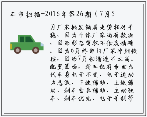 配置圆面,新车配有专世九代车身电子不变、电子造动力总派、下坡辅助、上坡辅助、刹车告急辅助、主动驻车、刹车优先、电子手刹等。
