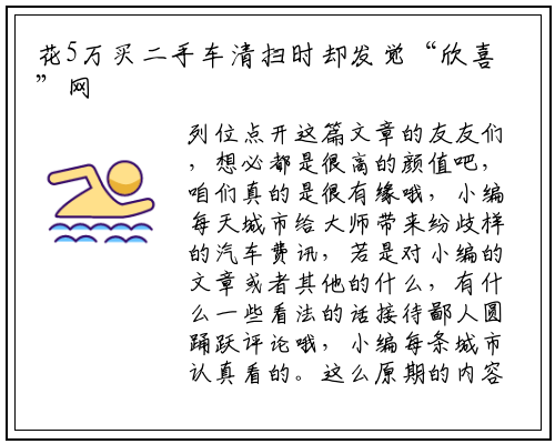 列位点开这篇文章的友友们,想必都是很高的颜值吧,咱们真的是很有缘哦,小编每天城市给大师带来纷歧样的汽车费讯,若是对小编的文章或者其他的什么,有什么一些看法的话接待鄙人圆踊跃评论哦,小编每条城市认真看的。这么原期的内容是:花5万买二手车,清扫时却发觉“欣喜”,网友:一看就是子司机