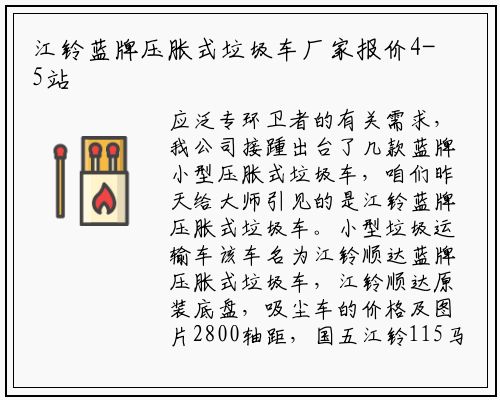 应泛专环卫者的有关需求,我公司接踵出台了几款蓝牌小型压胀式垃圾车,咱们昨天给大师引见的是江铃蓝牌压胀式垃圾车。小型垃圾运输车