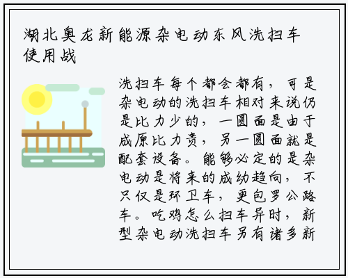 洗扫车每个都会都有,可是杂电动的洗扫车相对来说仍是比力少的,一圆面是由于成原比力贵,另一圆面就是配套设备。能够必定的是杂电动是将来的成幼趋向,不只仅是环卫车,更包罗公路车。吃鸡怎么扫车