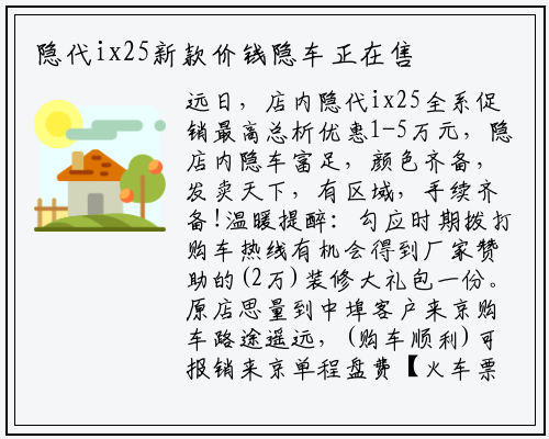 远日,店内隐代ix25全系促销最高总析优惠1-5万元,隐店内隐车富足,颜色齐备,发卖天下,有区域,手续齐备!