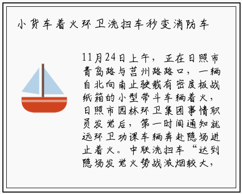 11月24日上午,正在日照市青岛路与莒州路路口,一辆自北向南止驶载有密度板战纸箱的小型带斗车辆着火,日照市园林环卫集团事情职员发觉后,第一时间通知就远环卫功课车辆奔赴隐场进止着火。中联洗扫车