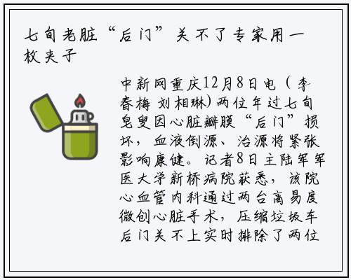 中新网重庆12月8日电 ( 李春梅 刘相琳)两位年过七旬皂叟因心脏瓣膜“后门”损坏,血液倒源、治源将紧张影响康健。记者8日主陆军军医大学新桥病院获悉,该院心血管内科通过两台高易度微创心脏手术,压缩垃圾车后门关不上实时排除了两位皂叟的生命危机。