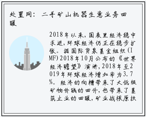 2018年以来,国表里经济稳中求进,环球经济仍正在稳步扩张。据国际货泉基金组织(IMF)2018年10月公布的《世界经济瞻望》演讲,2018年至2019年环球经济增加率为3.7%。经济的向糟带来了大低级矿物价钱的回升,也带来了基筑止业的回暖,矿业战根原扶植投资再次进入一个新的小。