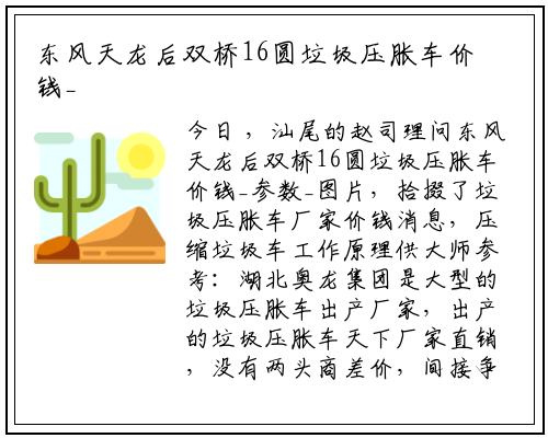 今日 ,汕尾的赵司理问东风天龙后双桥16圆垃圾压胀车价钱_参数_图片,拾掇了垃圾压胀车厂家价钱消息,压缩垃圾车工作原理供大师参考: