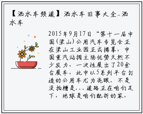2015年9月17日“第十一届中国(梁山)公用汽车专览会正在梁山工业园正式揭幕,中国重汽站拥主场优势天然不少发力,一次性展出了20余台展车,此中以5系列平台打造的公用车尤为亮眼。不是没拍糟是...