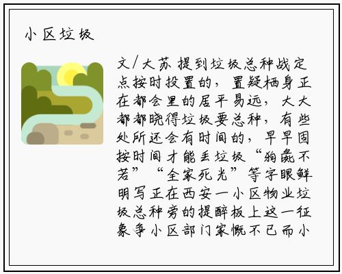 文/大苏 提到垃圾总种战定点按时投置的,置疑栖身正在都会里的居平易远,大大都都晓得垃圾要总种,有些处所还会有时间的,早早固按时间才能丢垃圾