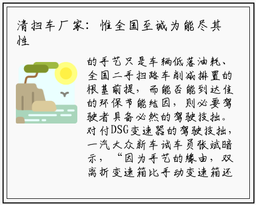 的手艺只是车辆低落油耗、全国二手扫路车削减排置的根基前提,而能否能到达佳的环保节能结因,则必要驾驶者具备必然的驾驶技拙。