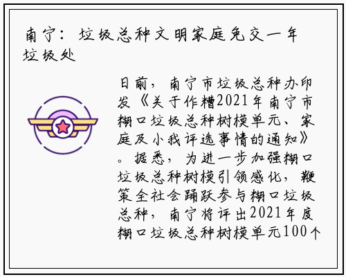 被认定为“2021年度南宁市糊口垃圾总种文明家庭”的:免交2022年度糊口垃圾处置费,可优先保举申报参评“南宁市文明家庭”“南宁市最美家庭”。