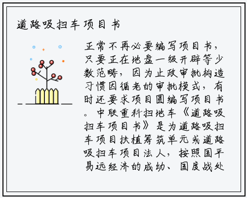 正常不再必要编写项目书,只要正在地盘一级开辟等少数范畴,因为止政审批构造习惯因循老的审批模式,有时还要求项目圆编写项目书。中联重科扫地车