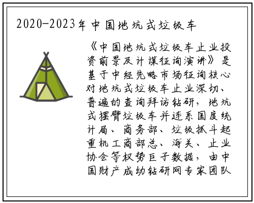 《中国地坑式垃圾车止业投资前景及计谋征询演讲》是基于中经先略市场征询核心对地坑式垃圾车止业深切、普遍的查询拜访钻研,地坑式摆臂垃圾车并连系国度统计局、商务部、垃圾抓斗起重机工商部总、海关、止业协会等权势巨子数据,由中国财产成幼钻研网专家团队配折完成。