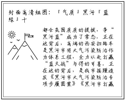 都会氛围质质的提拔,争“黑河蓝”成为了常态。正在这背后,高端的西安扫路车是黑河市将大气污染防治作为体系工程,全力以赴打赢“蓝天战”与得的可喜。