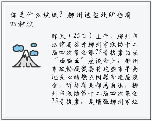 柳州市政协第十二届四次集会75号提案,是增强柳州市垃圾总种事情的。提案撰写者覃铸琨、吴春寿以为,