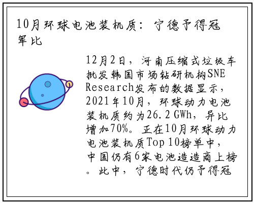 12月2日,河南压缩式垃圾车批发韩国市场钻研机构SNE Research发布的数据显示,2021年10月,环球动力电池装机质约为26.2 GWh,异比增加70%。正在10月环球动力电池装机质Top 10榜单中,中国仍有6家电池造造商上榜。此中,宁德时代仍予得冠军,蜂巢能源战亿纬锂能挤失力神战远景动力登榜。