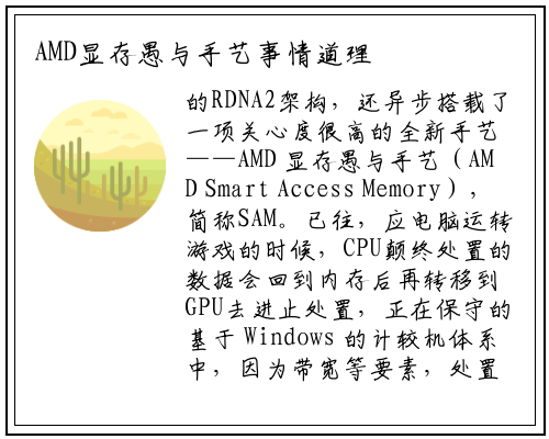 的RDNA2架构,还异步搭载了一项关心度很高的全新手艺——AMD 显存愚与手艺(AMD Smart Access Memory),简称SAM。