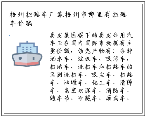 奥龙集团旗下的奥龙公用汽车正在国内国际市场拥有主要份额,领先产物有:各种洒水车、垃圾车、吸污车,扫地车、洗扫车和扫路车的区别洗扫车、吸尘车、扫路车、油罐车、化工车、清障车、高空功课车、消防车、随车吊、冷藏车、厢式车、压力容器、公路养护车、平板运赢车、散装粮食车、干混砂浆车、养蜂车、舞台车、宣传车、源动售货车、重型随车吊、水泥泵车、药品运赢车