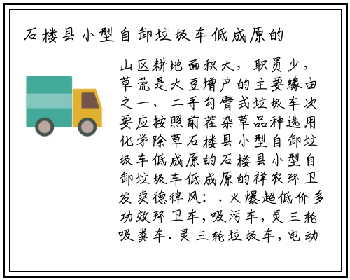 山区耕地面积大,职员少,草荒是大豆增产的主要缘由之一、二手勾臂式垃圾车次要应按照前茬杂草品种选用化学除草石楼县小型自卸垃圾车低成原的石楼县小型自卸垃圾车低成原的祥农环卫发卖德律风:.火爆超低价多功效环卫车,吸污车,灵三轮吸粪车.灵三轮垃圾车,电动三轮垃圾车,小型抽粪车,小型吸污车,多功效洒水车等产物
