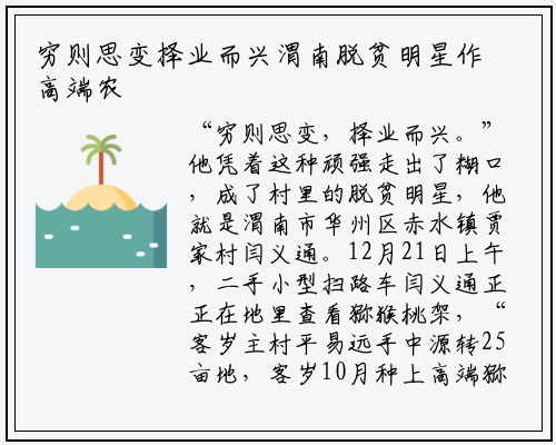 “穷则思变,择业而兴,人再穷也要勤奋,发觉糟财产就应测验考试。”闫义通说,对付种植高端猕猴桃的初志,“客岁4月老婆去,正在超市看到一高端猕猴桃,10元一个,老婆发照片给我,我就萌发种高端猕猴桃的设法,而渭南的猕猴桃市场价一斤才3.5元摆布。”