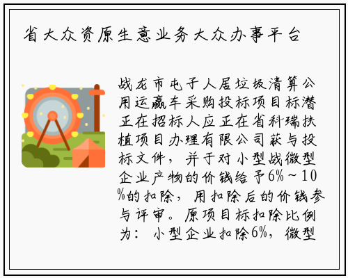 对小型战微型企业产物的价钱给予6%~10%的扣除,用扣除后的价钱参与评审。原项目标扣除比例为:小型企业扣除6%,微型企业扣除6%。